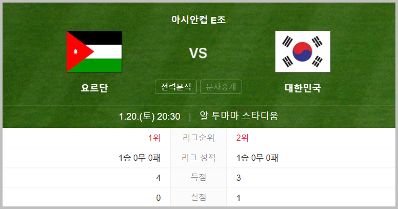 - 경기상대 : 요르단 VS 대한민국